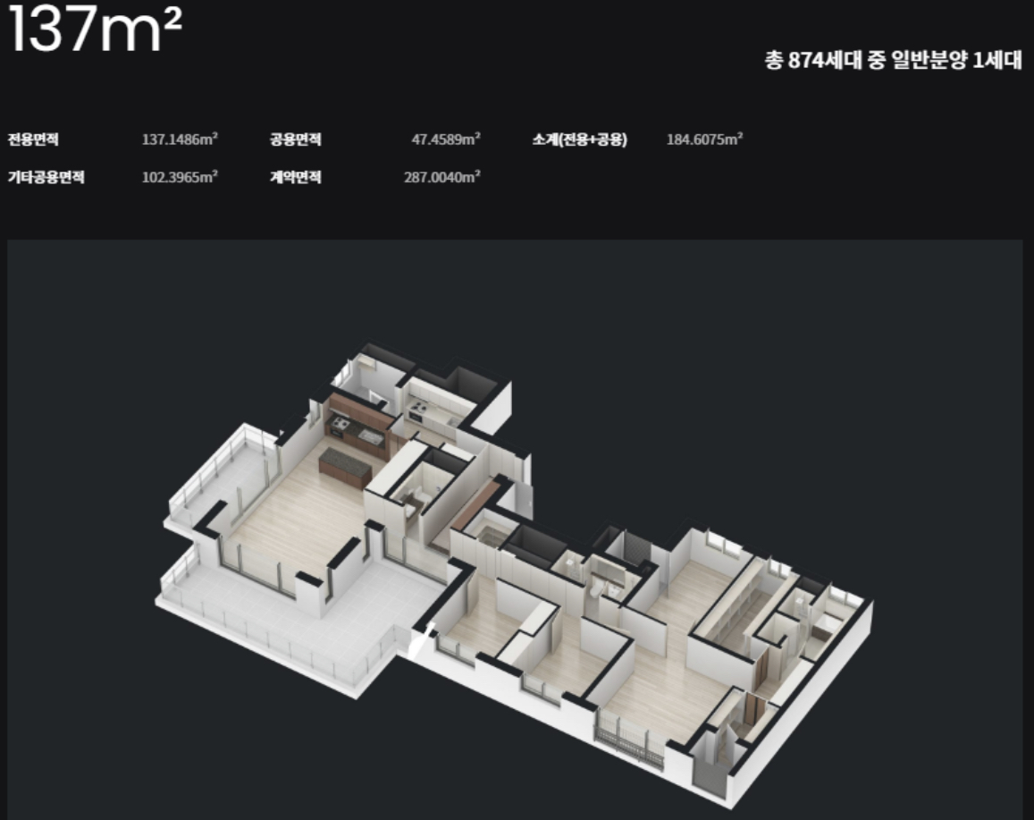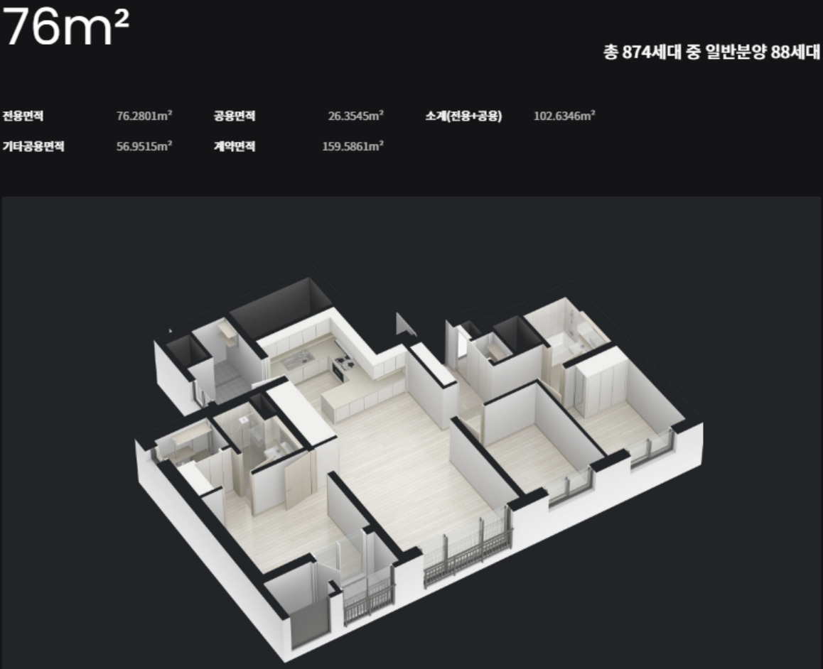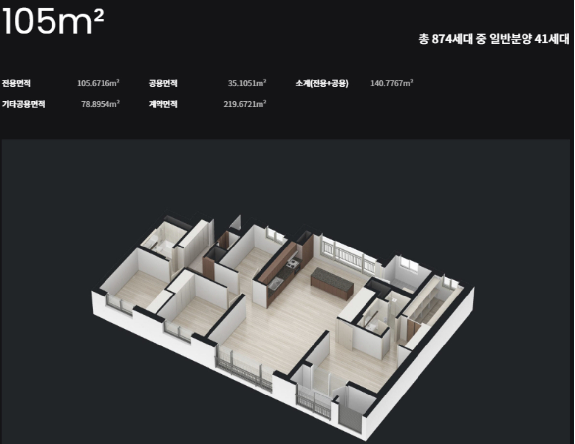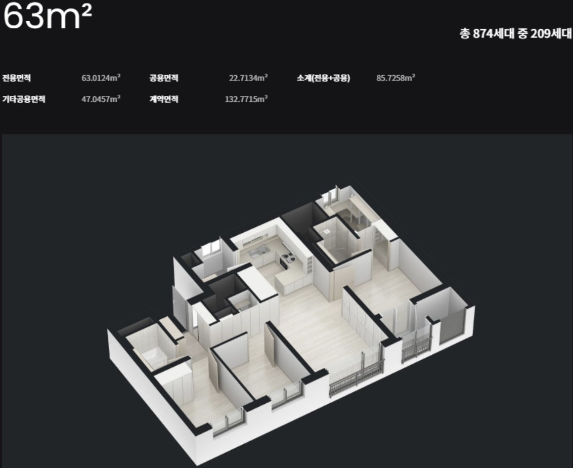 - 전용면적 : 63m2, 76m2, 84m2, 105m2, 137m2, 138m2