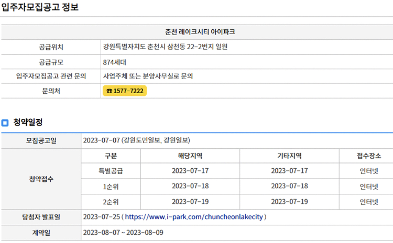 춘천 레이크시티 아이파크의 분양과 모델하우스